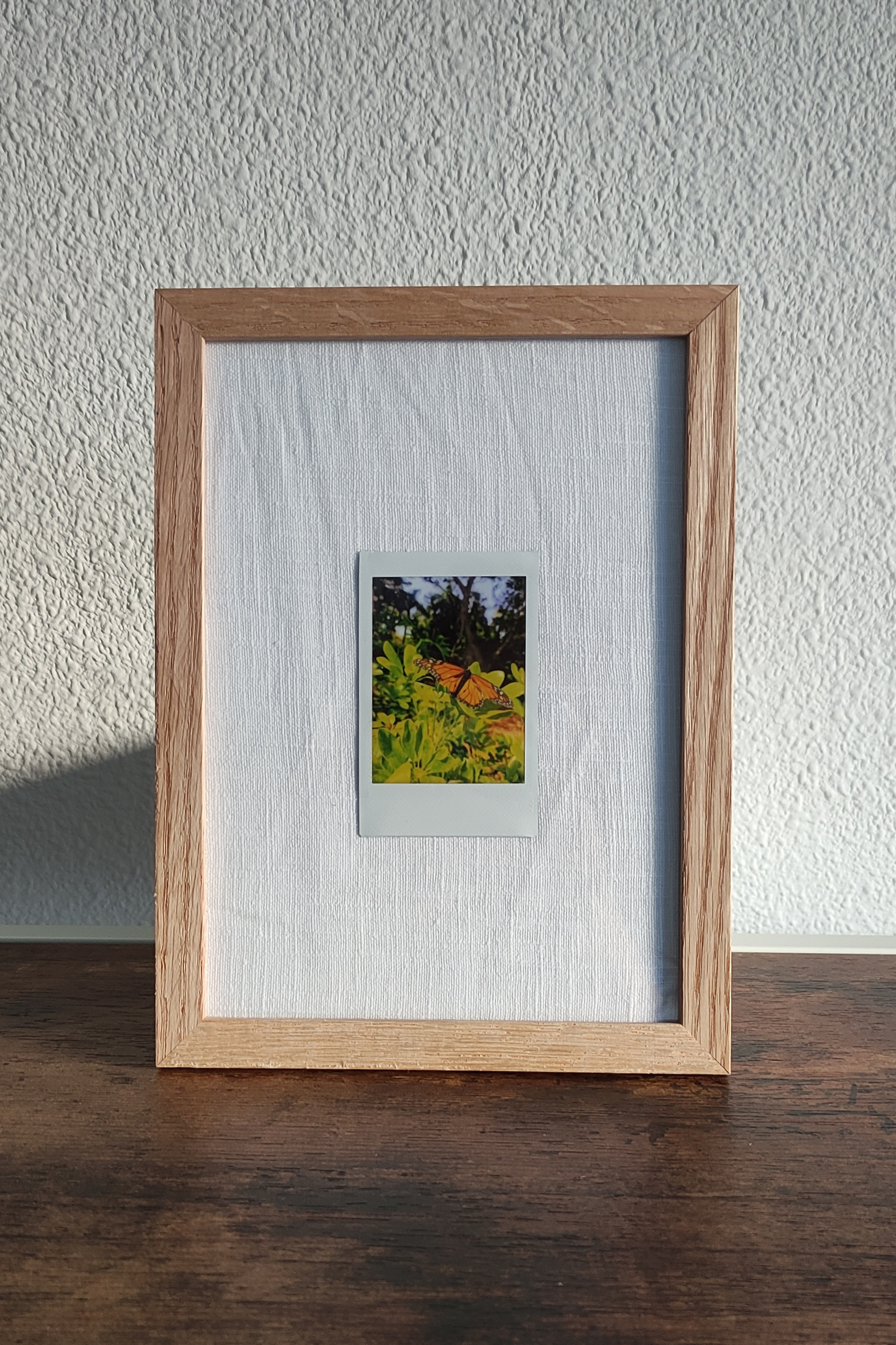 Impresión Instax Mini con Fondo de Tela y Marco de Roble A5