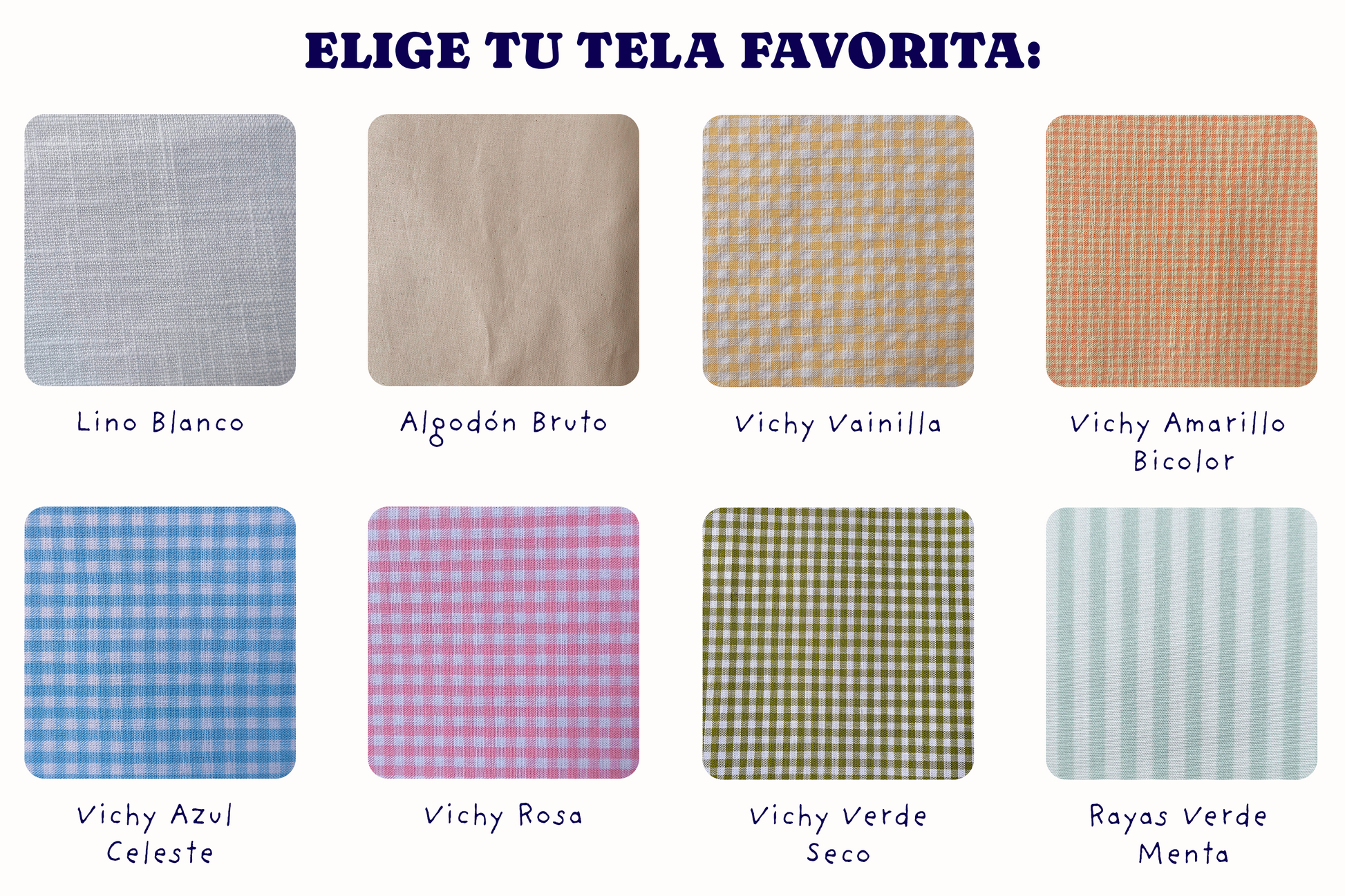 Fondo de tela a elegir (varios colores y texturas disponibles).