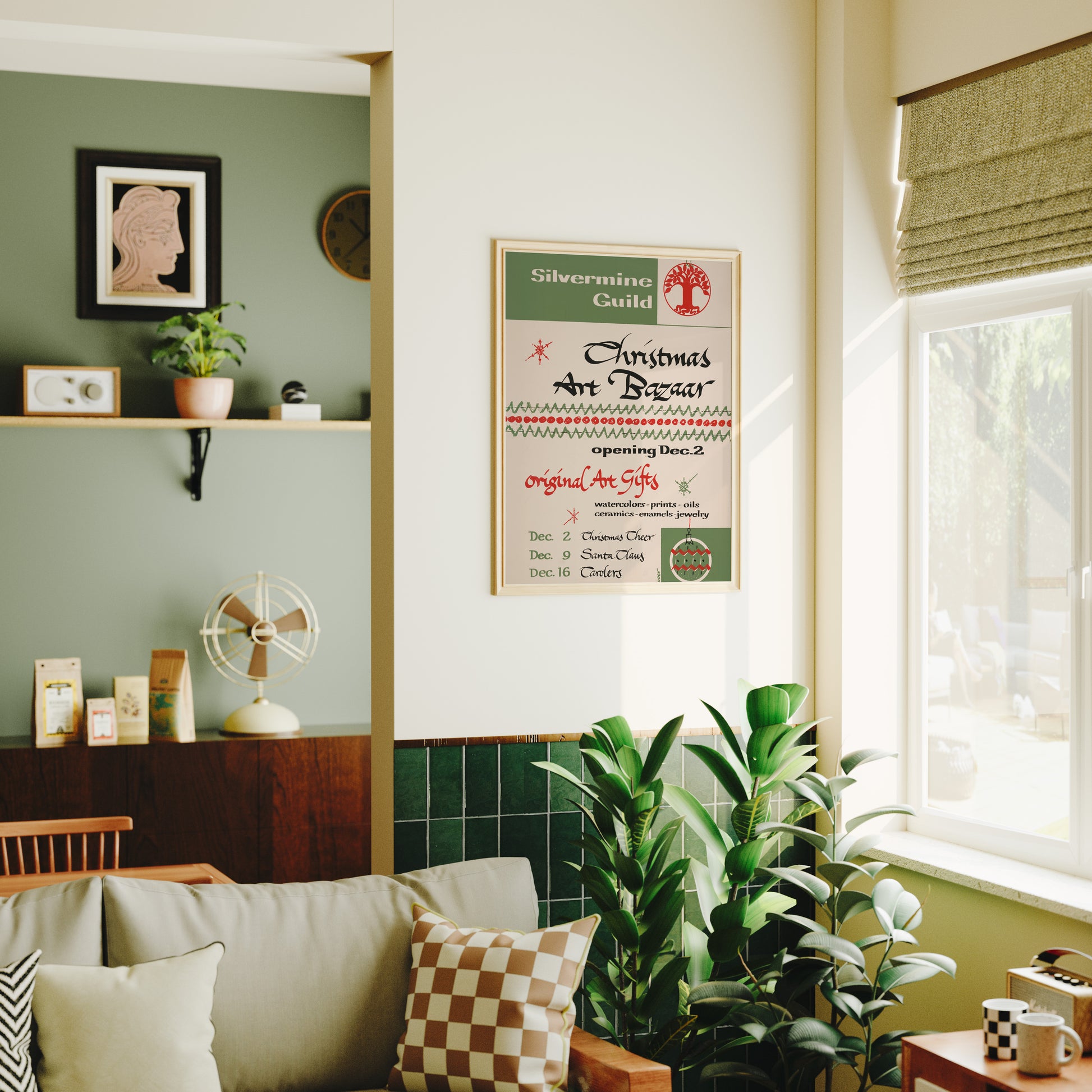 Añade un toque festivo, colorido y auténticamente retro a tu hogar con este póster Christmas Art Bazaar (1964), un diseño que refleja el encanto gráfico de los años 60. Con su estilo vibrante, líneas limpias y estética mid-century, esta pieza es perfecta para quienes aman la decoración navideña con personalidad.